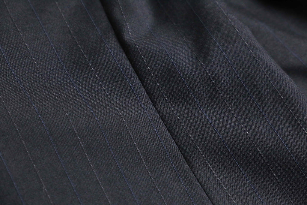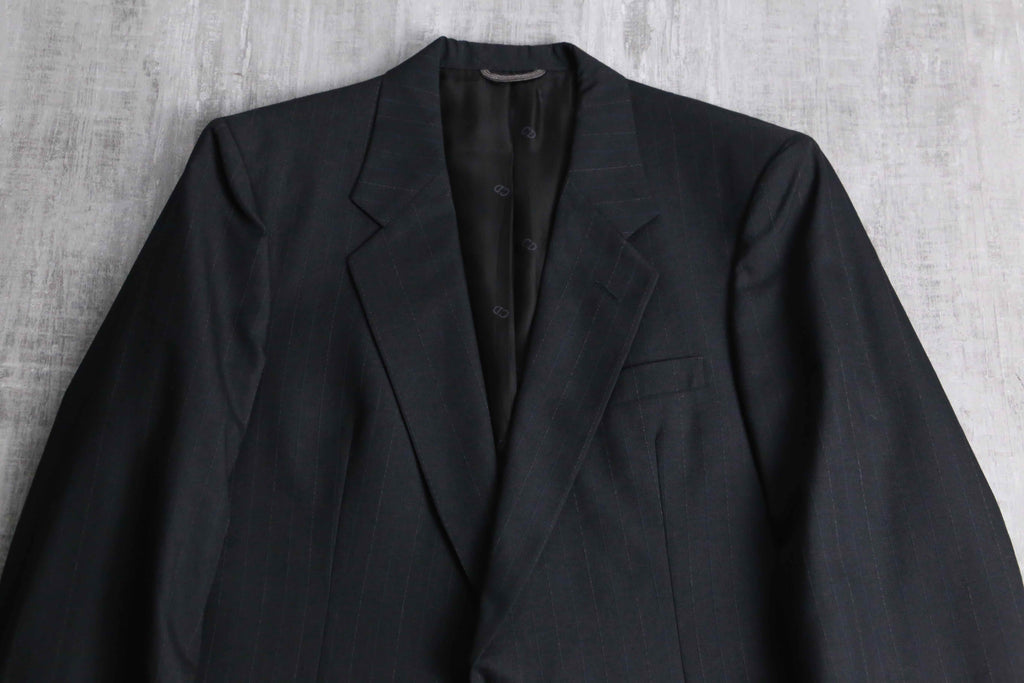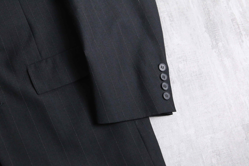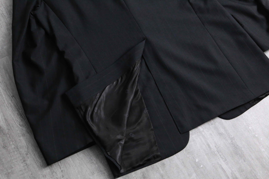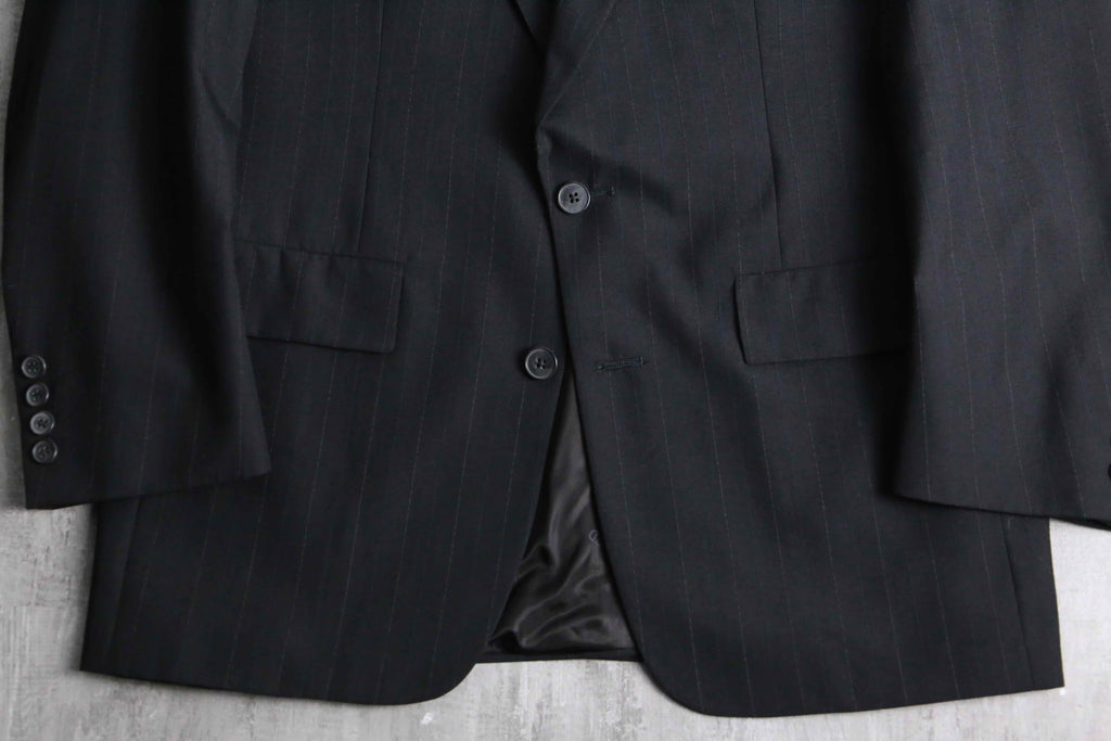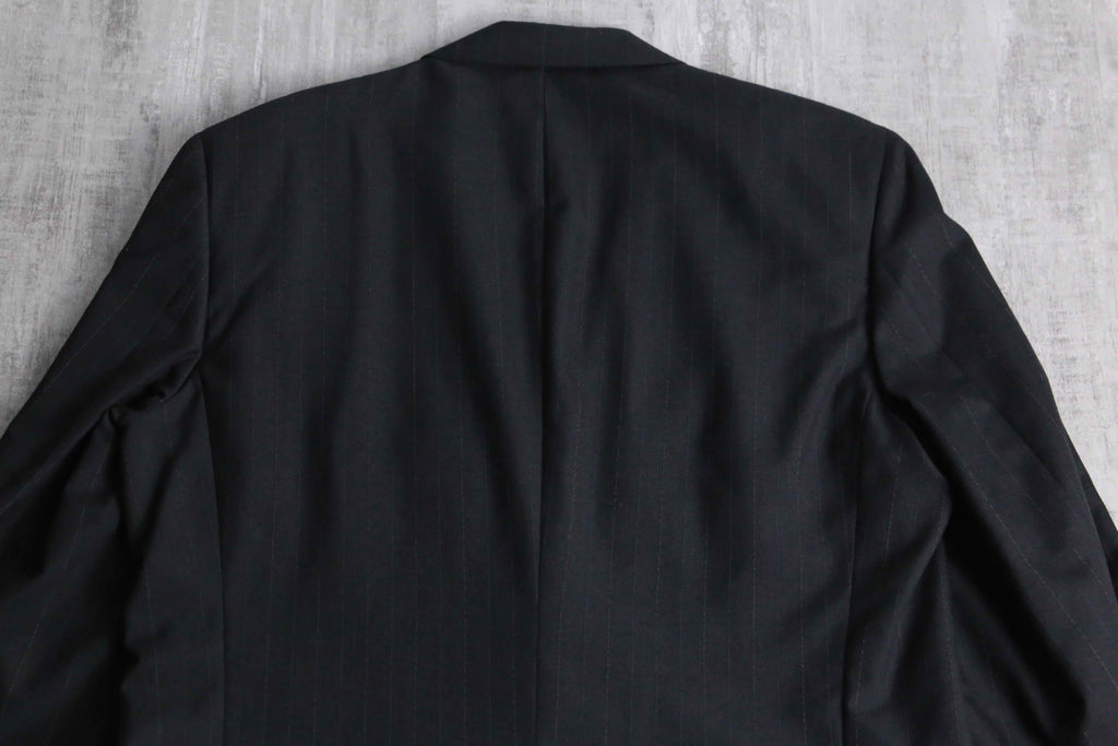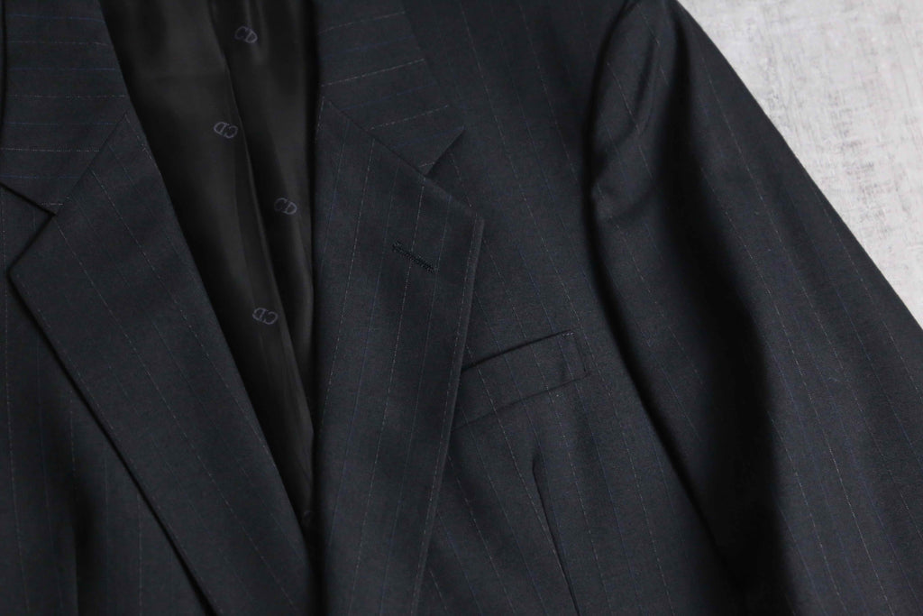 少しばかり霞んだ黒の色味にベージュと青のピンストライプに王道のセンターベント仕様。当時の趣を感じられます。こればかりはシンプルなスタイリングでも格好いいと思います。ぜひ。