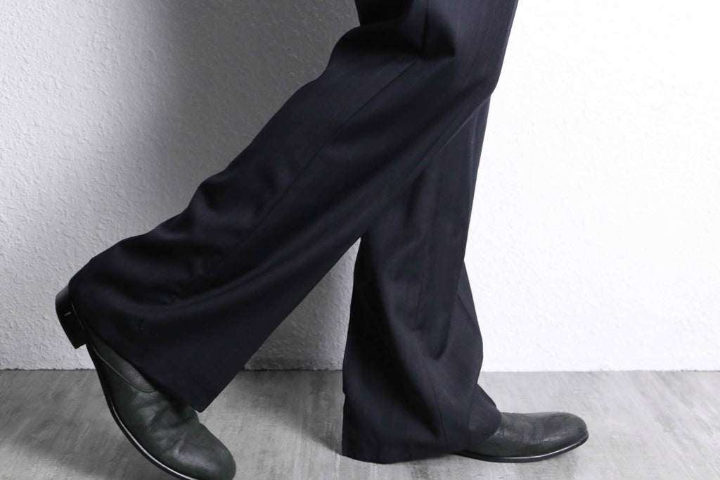 シルエットはほぼストレートに近いワイドテーパード。履いた時にはよりストレートに見えます。ポリエステルが多少織り込まれていることもあり、シワになりづらいのも嬉しい点です。ぜひ。