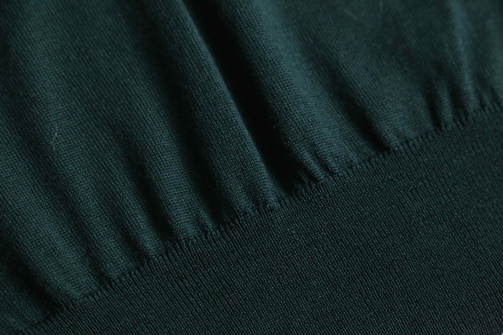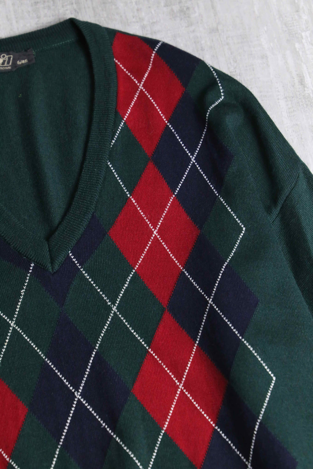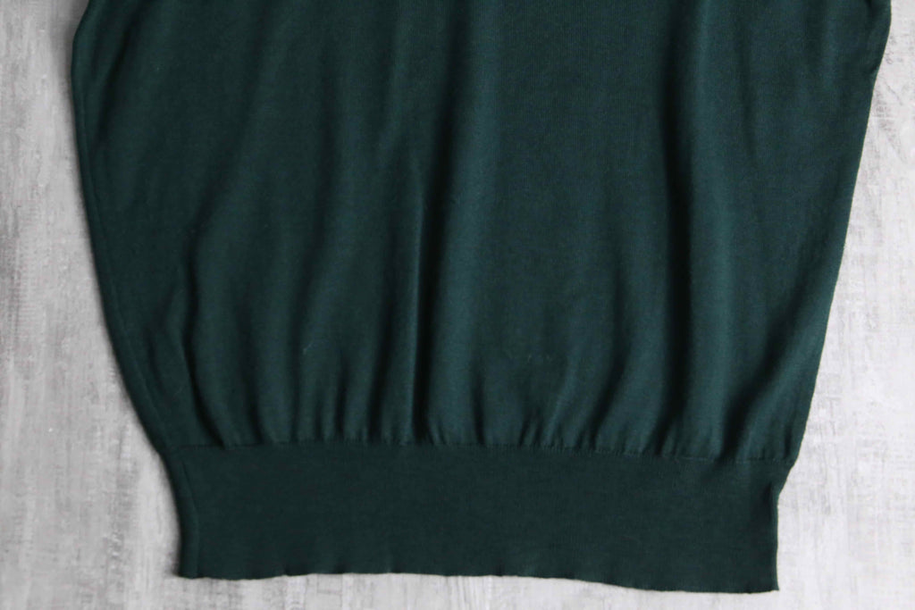 深みのある緑のボディに、コントラスト強めの赤と紺、白のチェック配色。少しVが深い為、この時期はレイヤード必須ではありますが、むしろレイヤードしたい方であれば好都合かと。