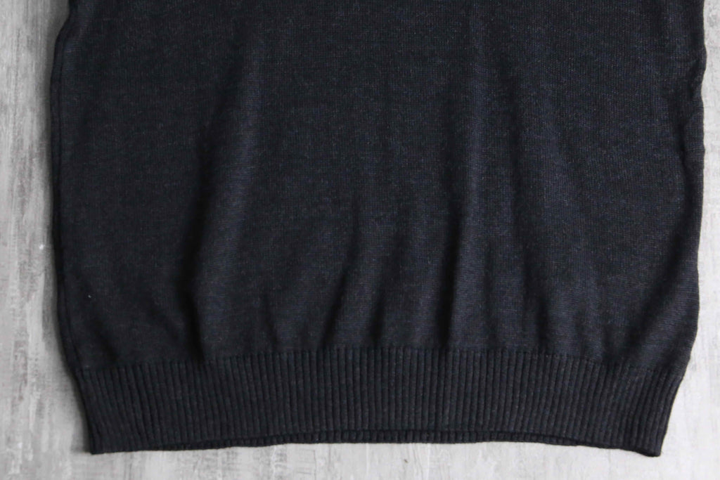 首元は浅めのVネック仕様。今時期はシャツやタートルとのレイヤードでバランスが取りやすく、冬本番まで長く使える1着かと。