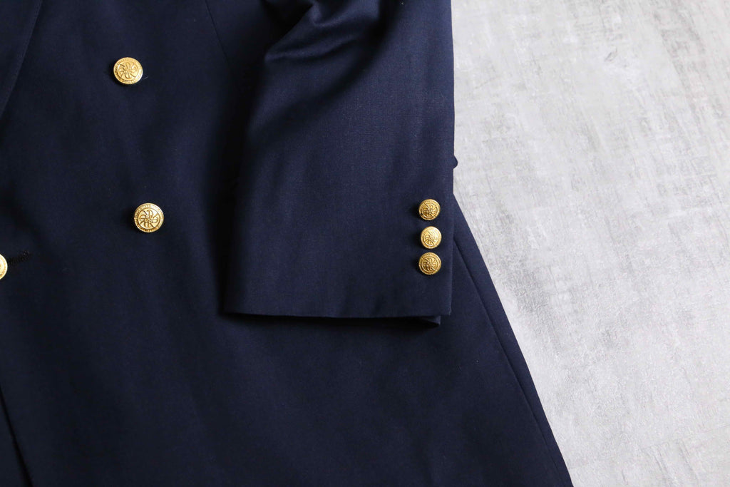 navy color gold button double breasted blazer