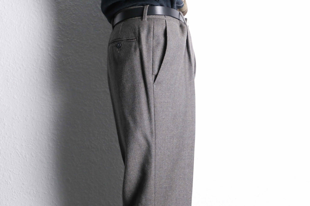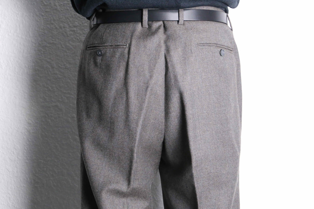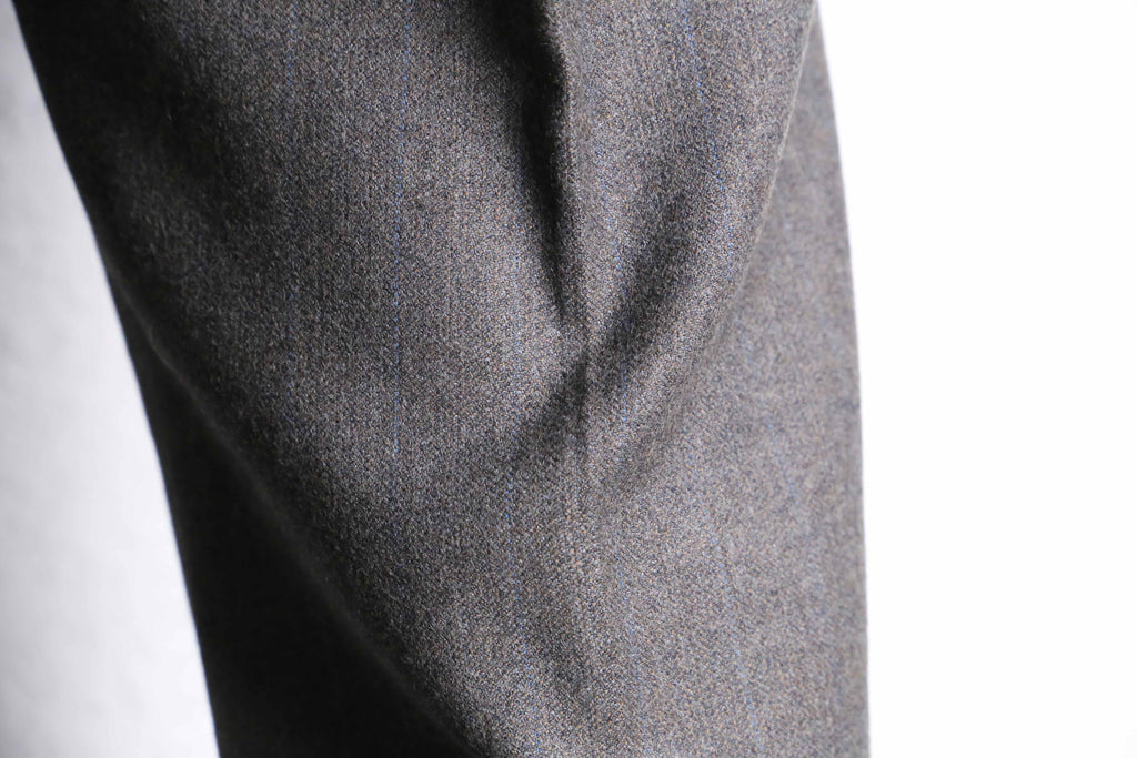 少し粋なグレーの杢色に青ストライプが映えるトラウザーズが入荷。