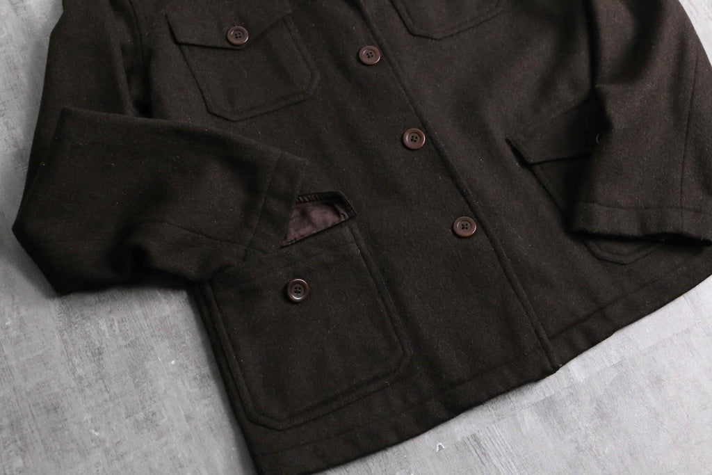 フラップ付きの胸ポケットと腰ポケットは利便性だけでなく、視覚的な重心をつくり全体のバランスをとってくれるデザインとしても機能してくれます。開襟気味の上品な襟元はカジュアルすぎず、シャツやスラックスといったドレス寄りのアイテムとも好相性。