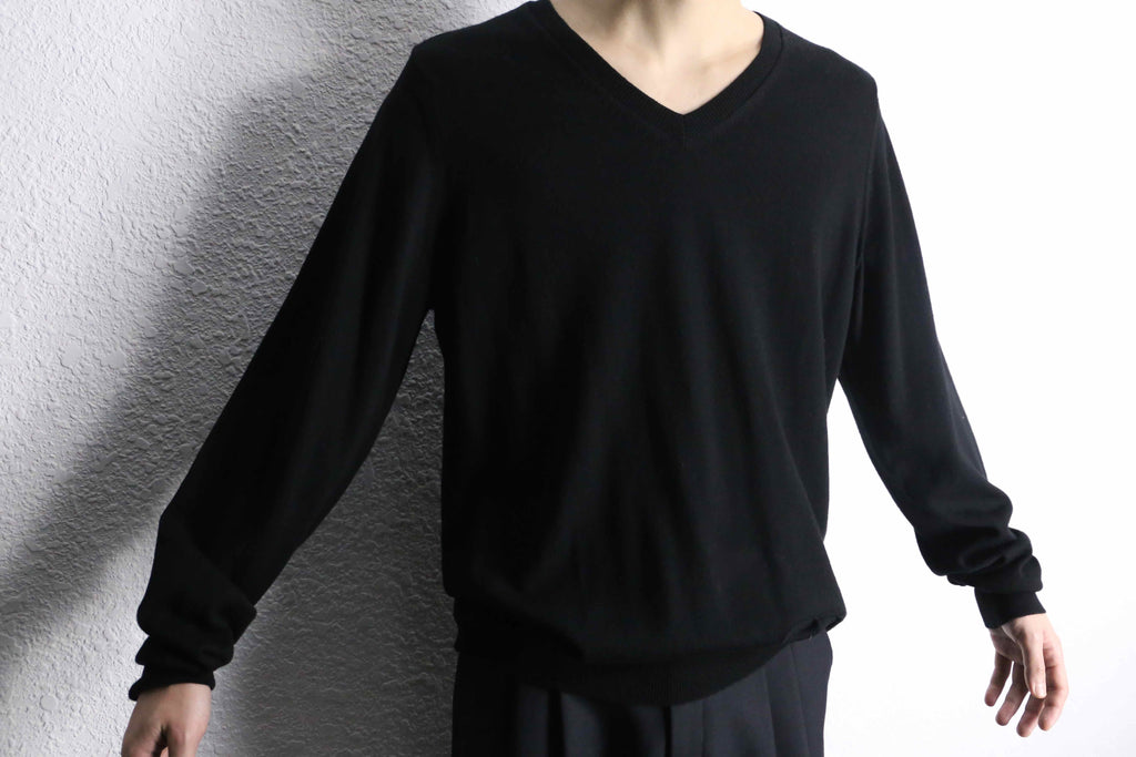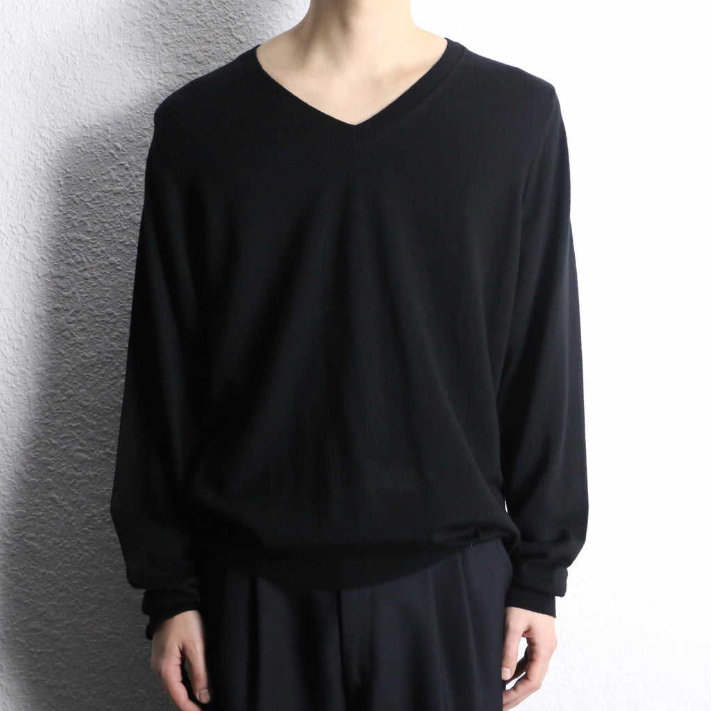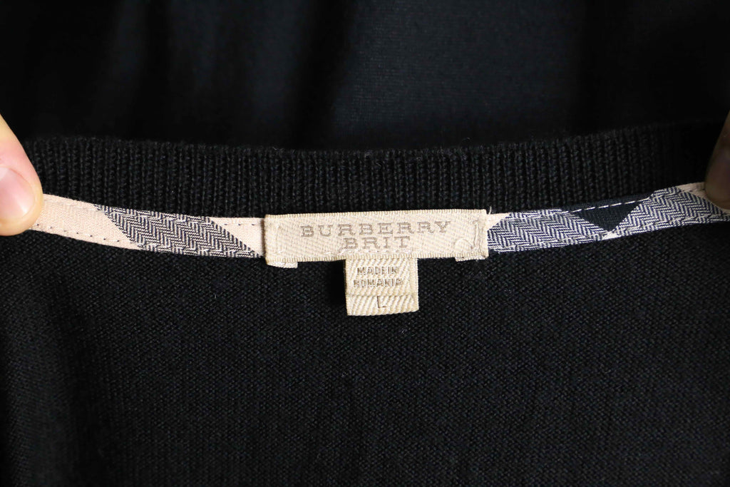 "BURBERRY" black wool V-neck knit