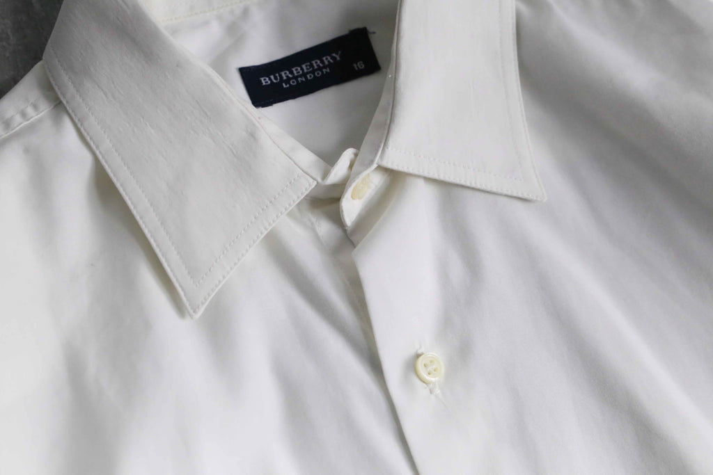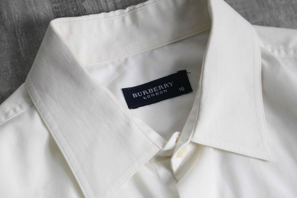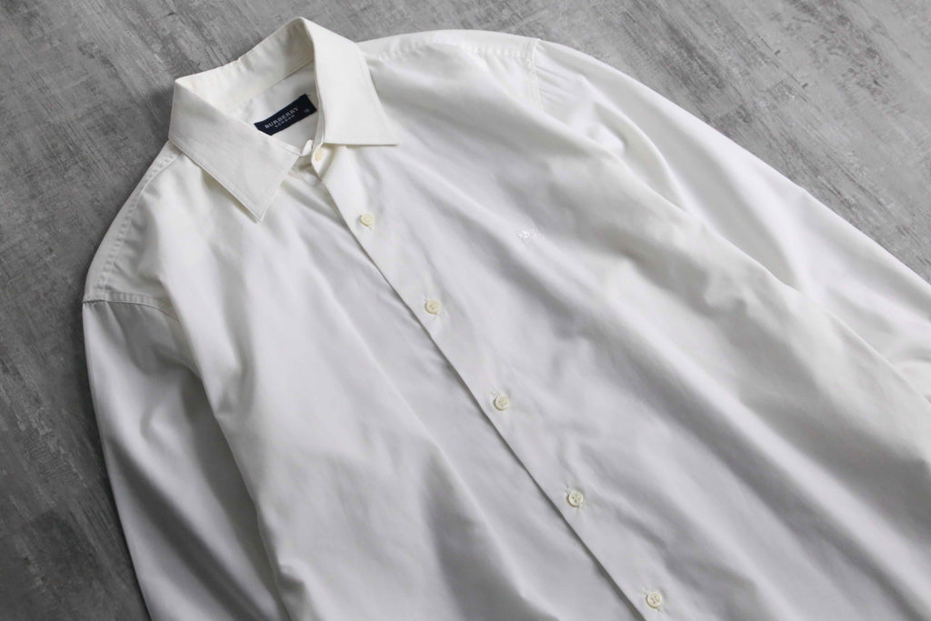 1856年創業、誰もが知るイギリスを代表するラグジュアリーブランド”Burberry”のまっさらな白が美しいシンプルなワンポイントロゴドレスシャツの入荷。