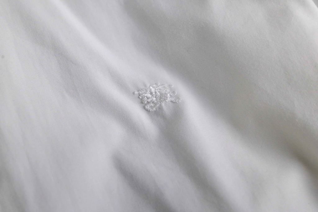 コットン素材を用いた程よい硬さありきな質感の1着。肌触りはもちろんですがシンプル故に長い目で使っていただけるかと。