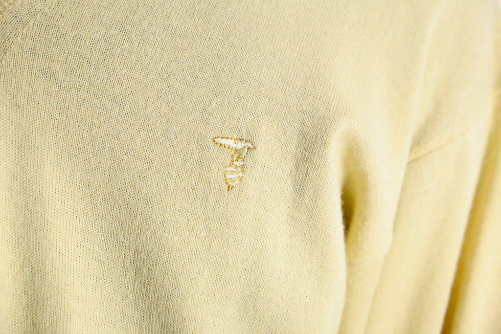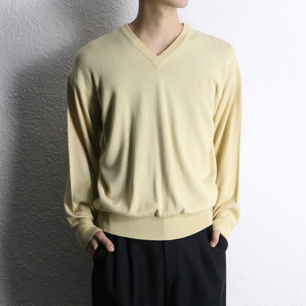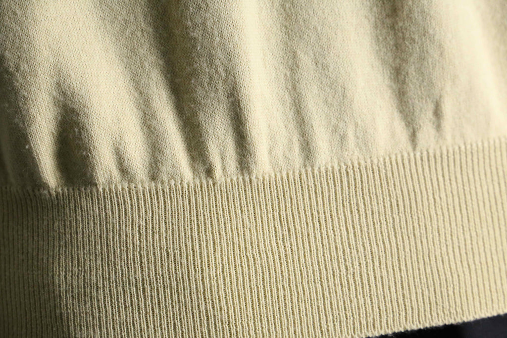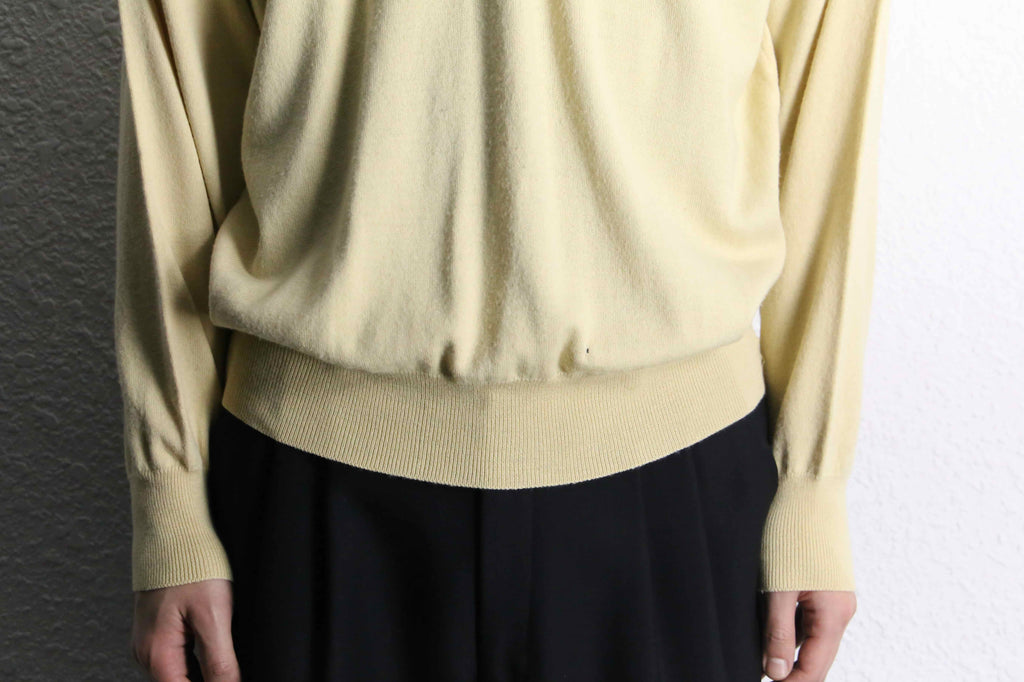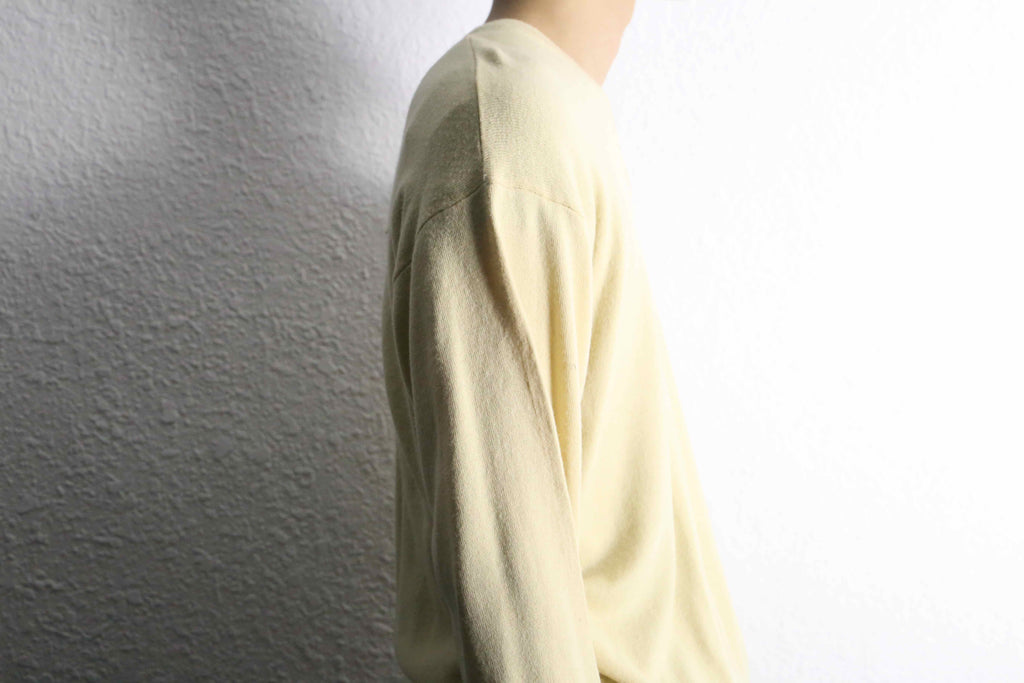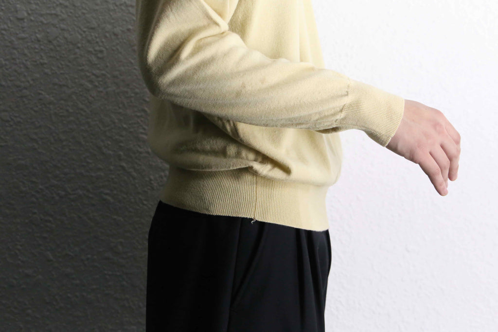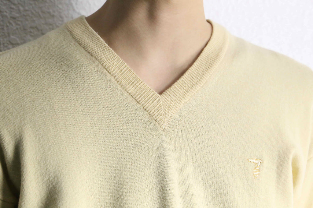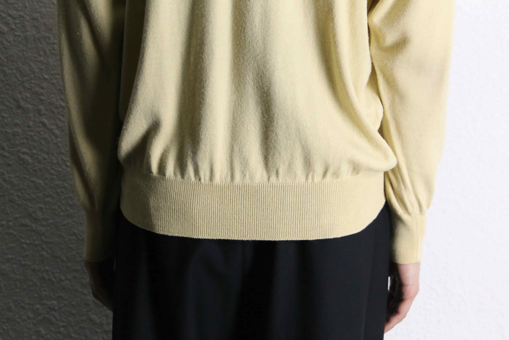 色味の好みこそ分かれますが、ウール×アクリルのハイゲージニットは、さらっとした肌触りでありながらしっかりと暖かさも確保されたファブリック。Vネックも深過ぎず、季節が少し進んだ春先には単品使いとしても重宝しそうです。是非。