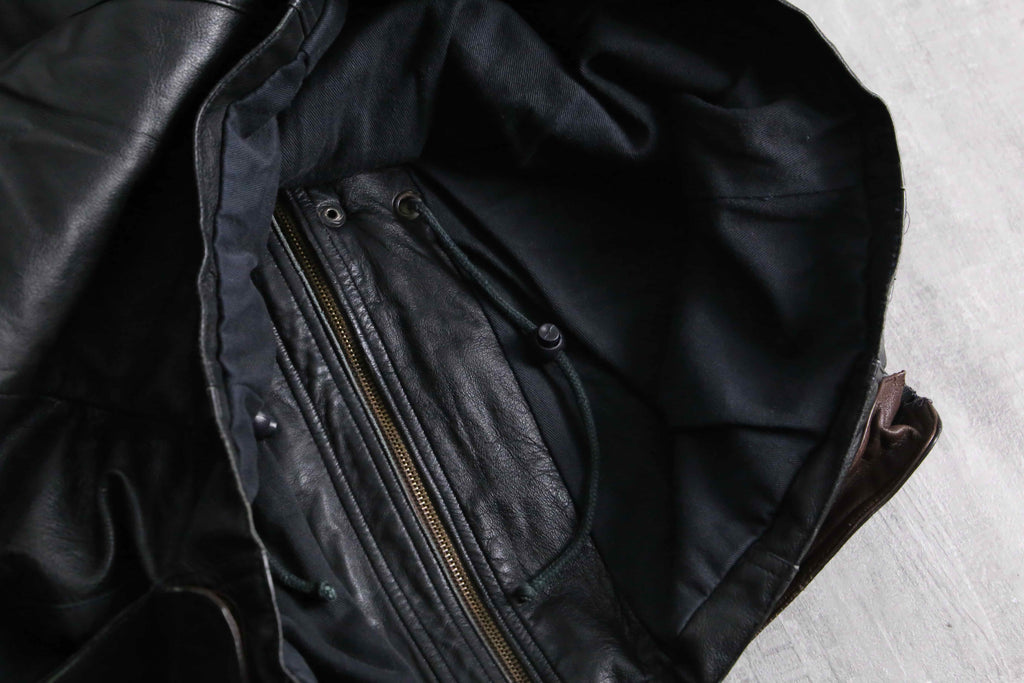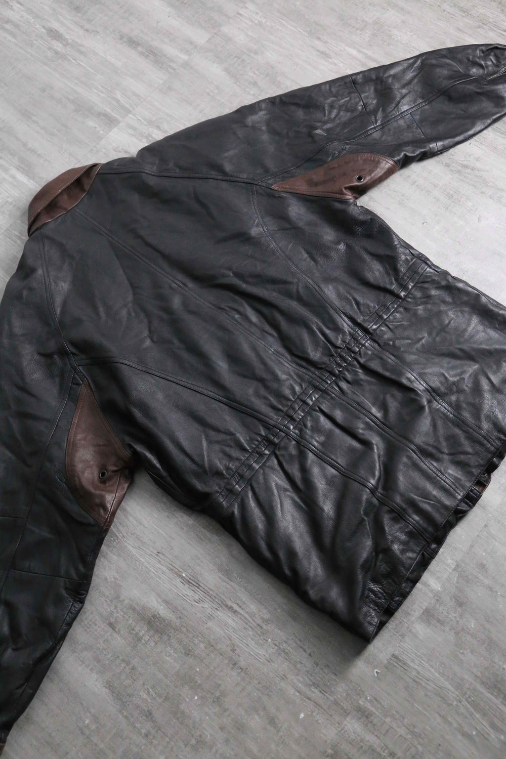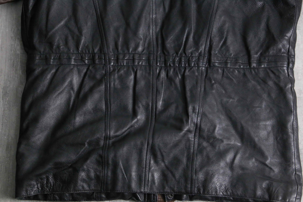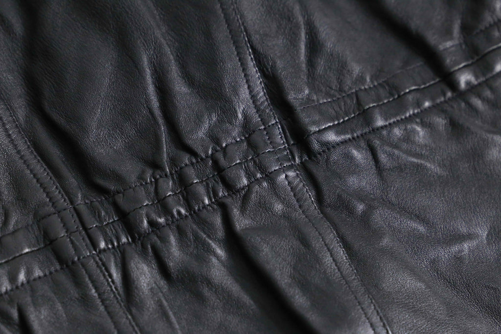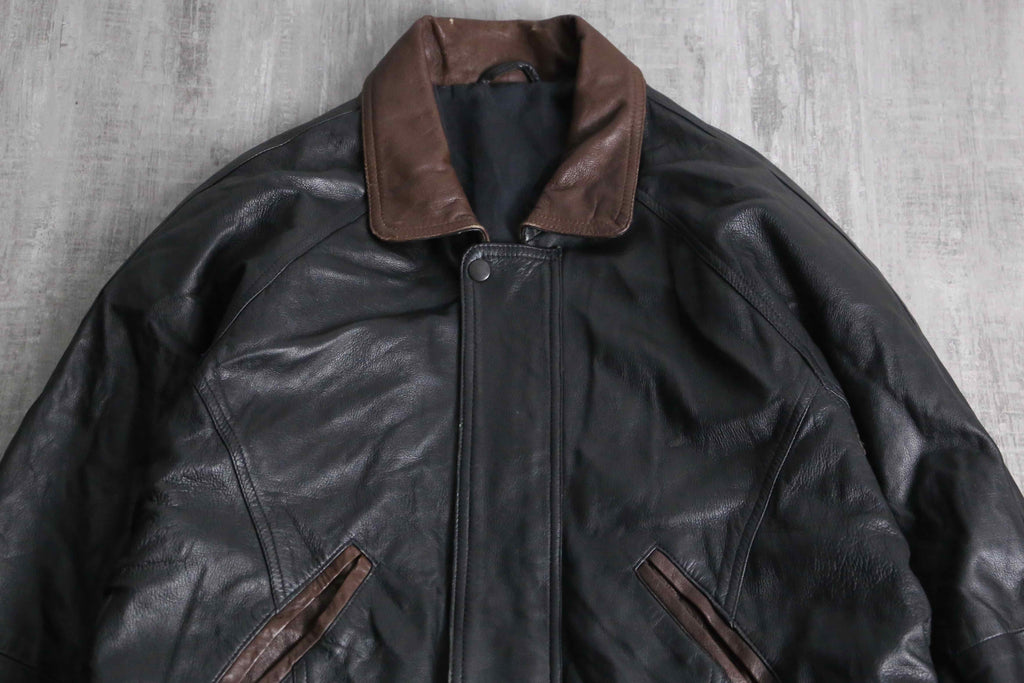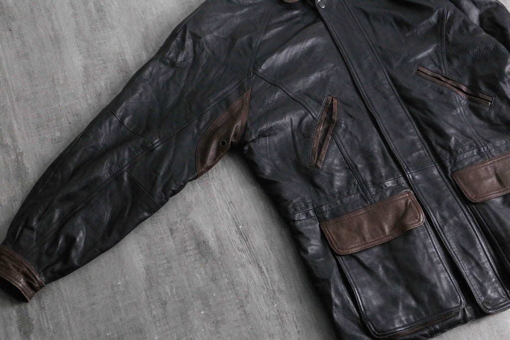 もちっと柔らかな質感のレザーが用いられたミドルレングスジャケット。ブラックレザーを基調に、襟・カフス・ポケット・比翼裏・脇部分にブラウンレザーを配した切り替えデザインが施されています。