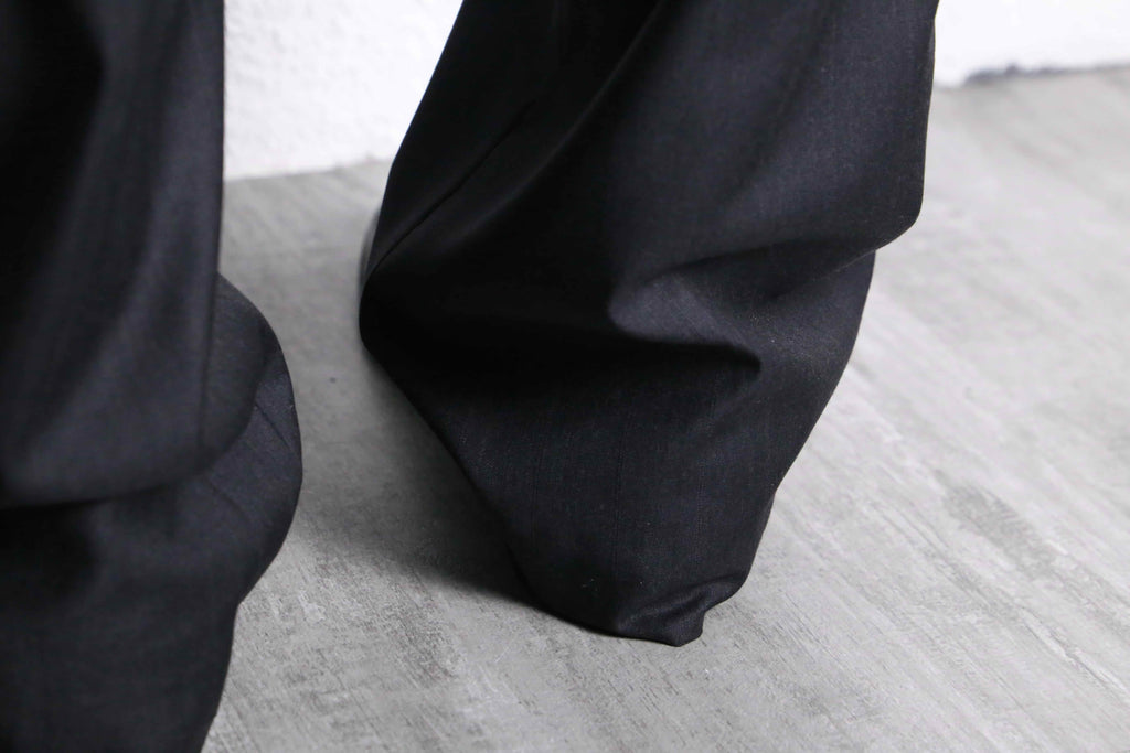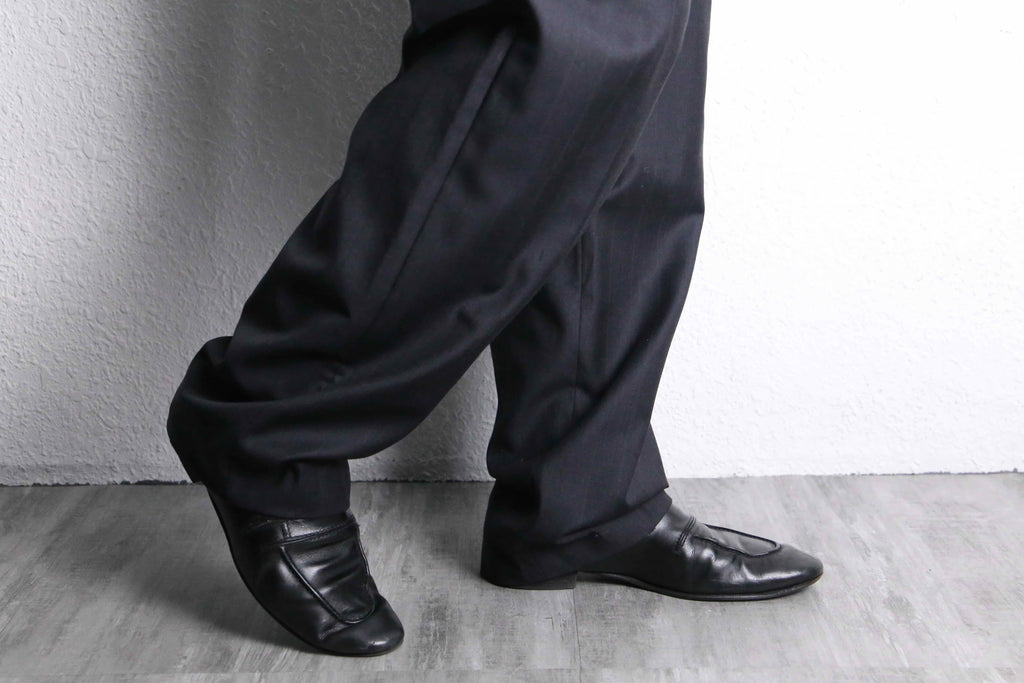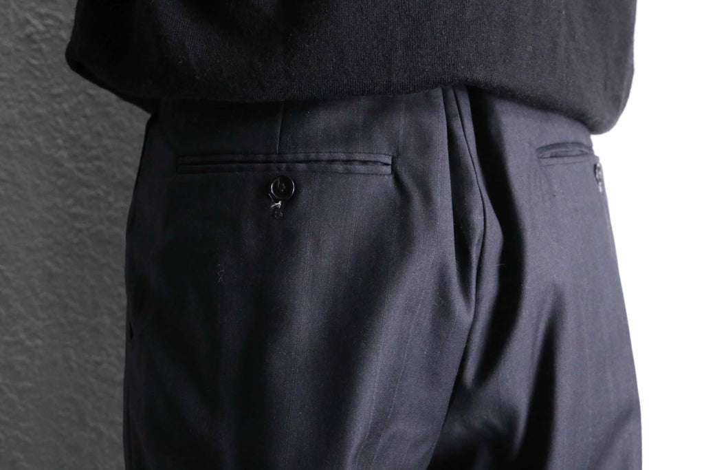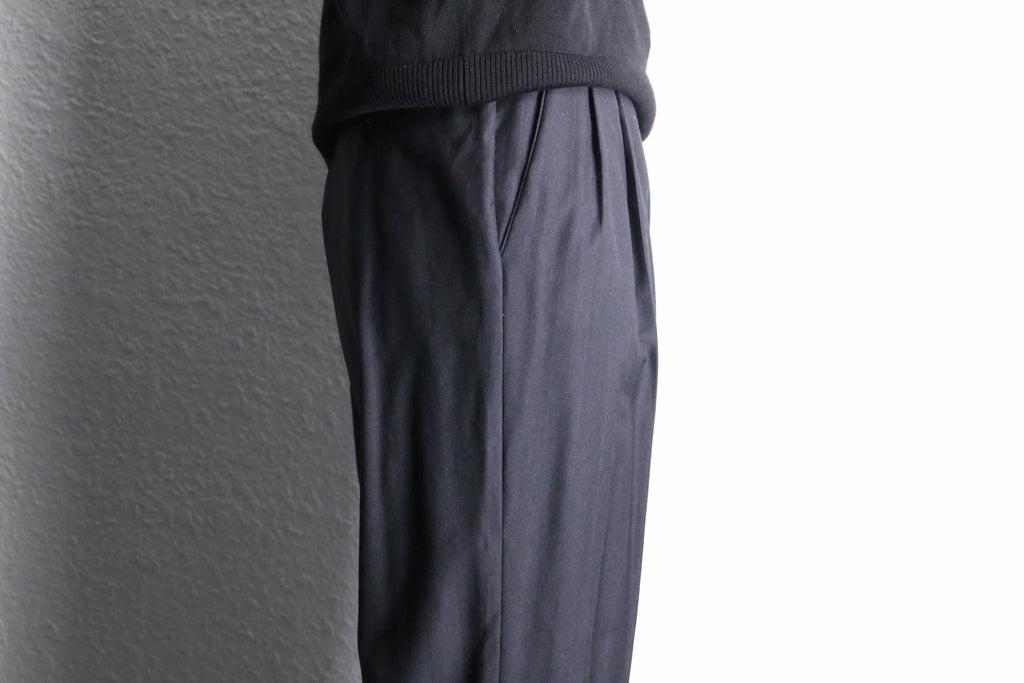 腰周りに余裕を持たせた2タック仕様。過度に太さが出ることもなく、綺麗に裾へと落ちていき、縦のラインを自然と強調してくれます。