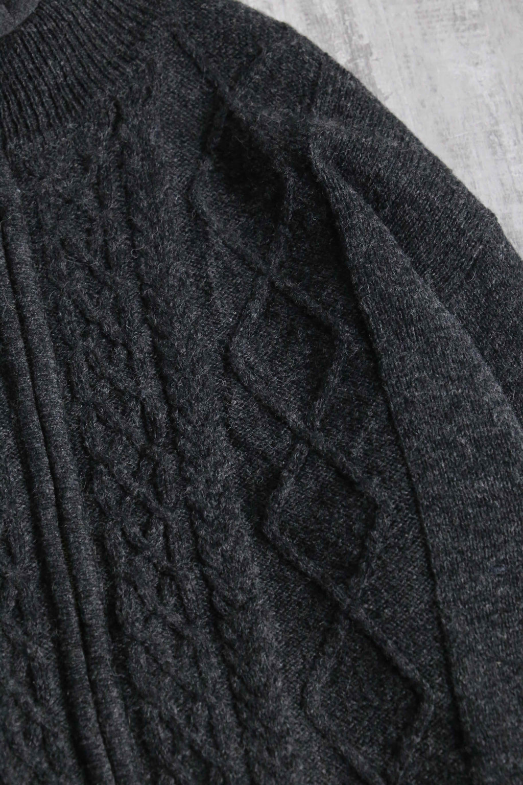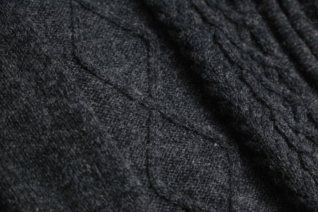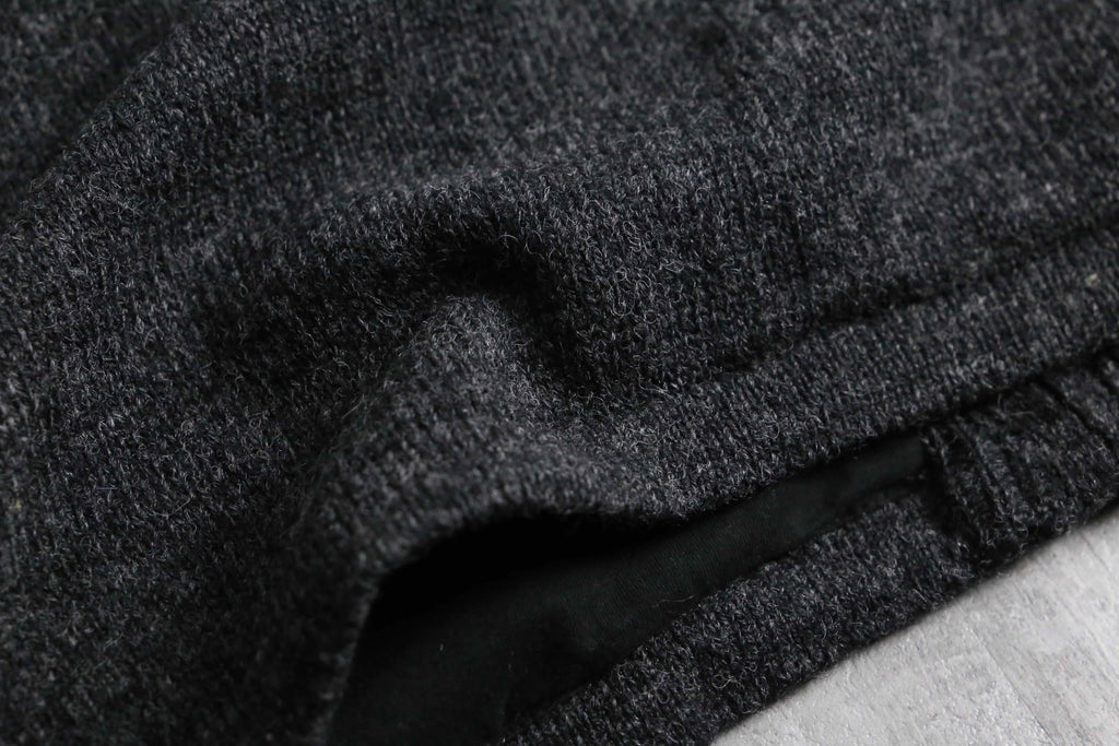 ボディにはウール100%素材を使用。混色の糸と立体感のある編み柄が奥行きを生み、シンプルながら存在感のある表情に仕上がっています。