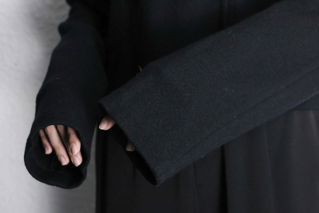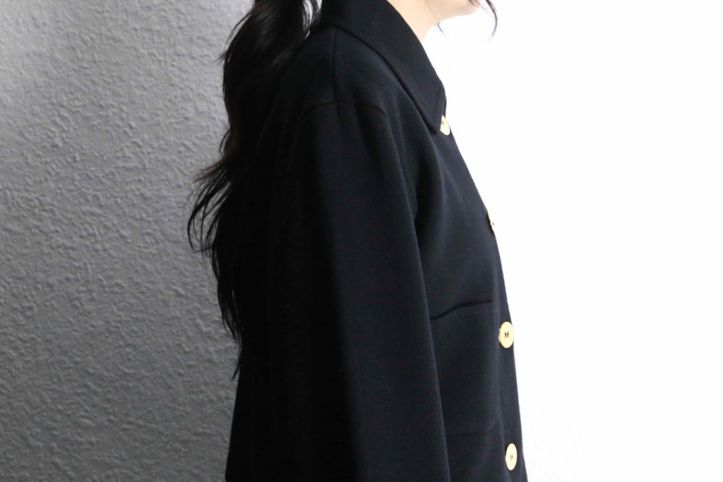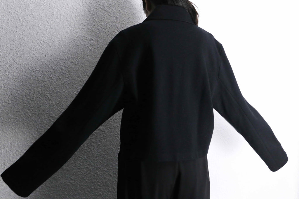 しっとりとしたウールならではの質感はしっかり感じられながらも、重たさを感じさせない軽やかな着心地。見た目の上品さに対して、気負わず羽織れるのが嬉しいポイントです。さらにポケット付きという実用面も、さりげなくありがたい点ですね。是非。