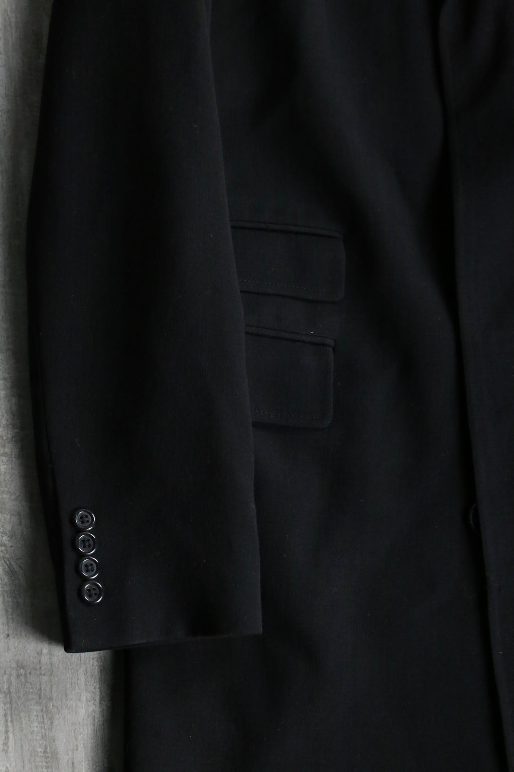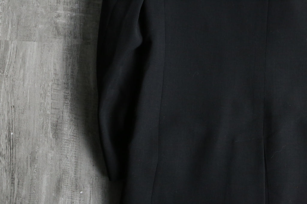 コートというジャンルではありながらも着心地は軽くテーラードジャケットのような着心地は堪らないです。それでいながらも肩は張らず、綺麗な縦落ち。コートにしてもジャケットのような着方をしてもいい気がします。