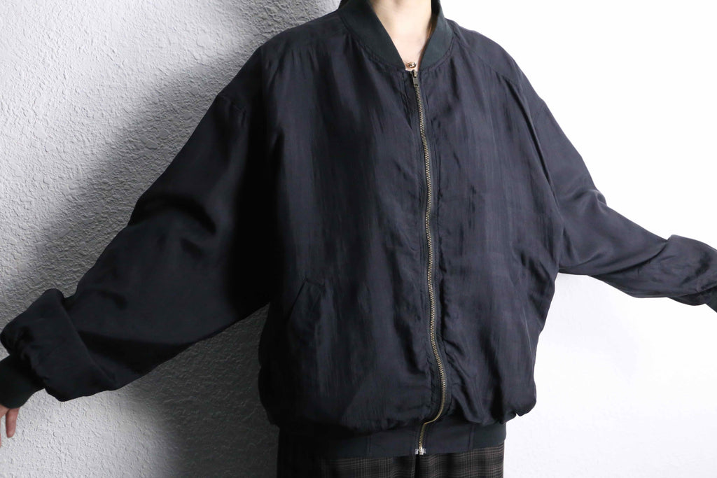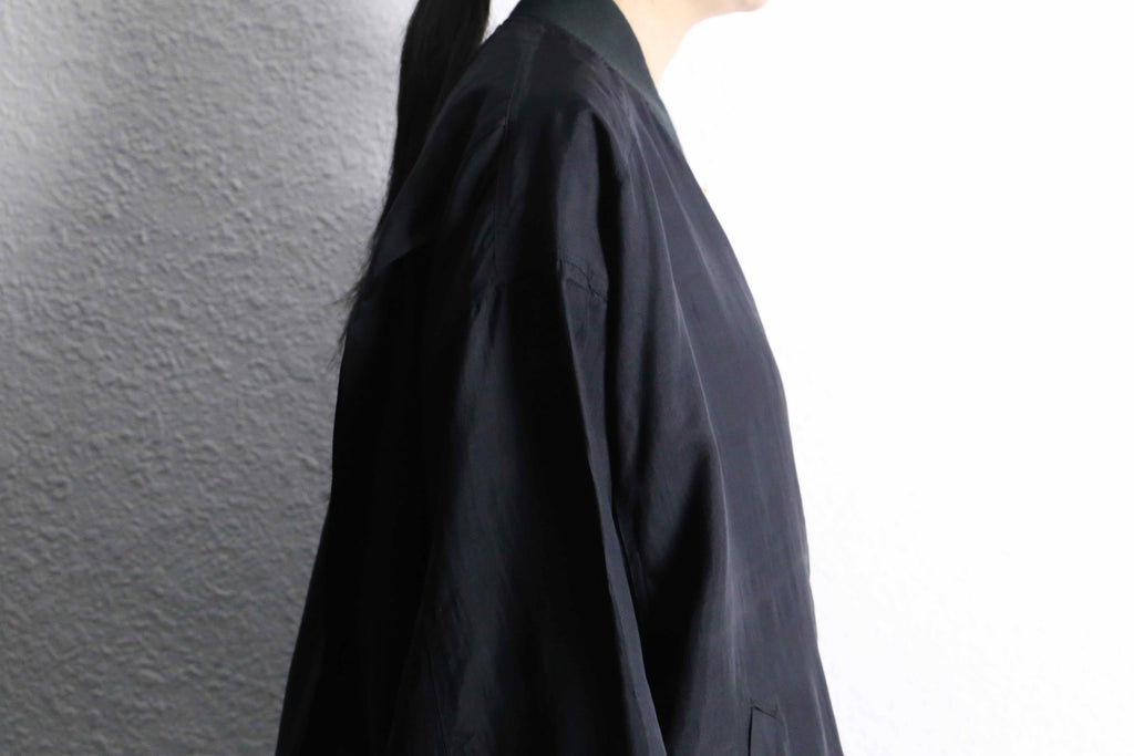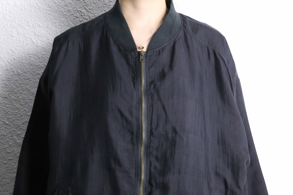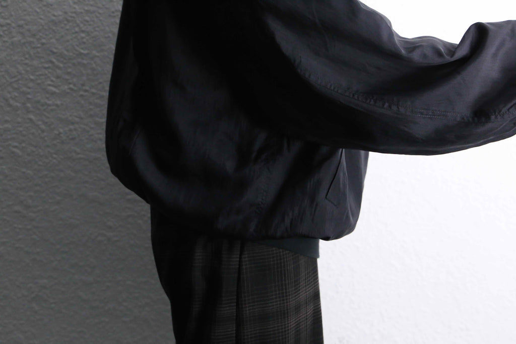 シルク100%を贅沢に使用したジップブルゾン。上品な光沢と軽やかな落ち感で、ミニマルなデザインながら素材の良さが際立つ一着です。