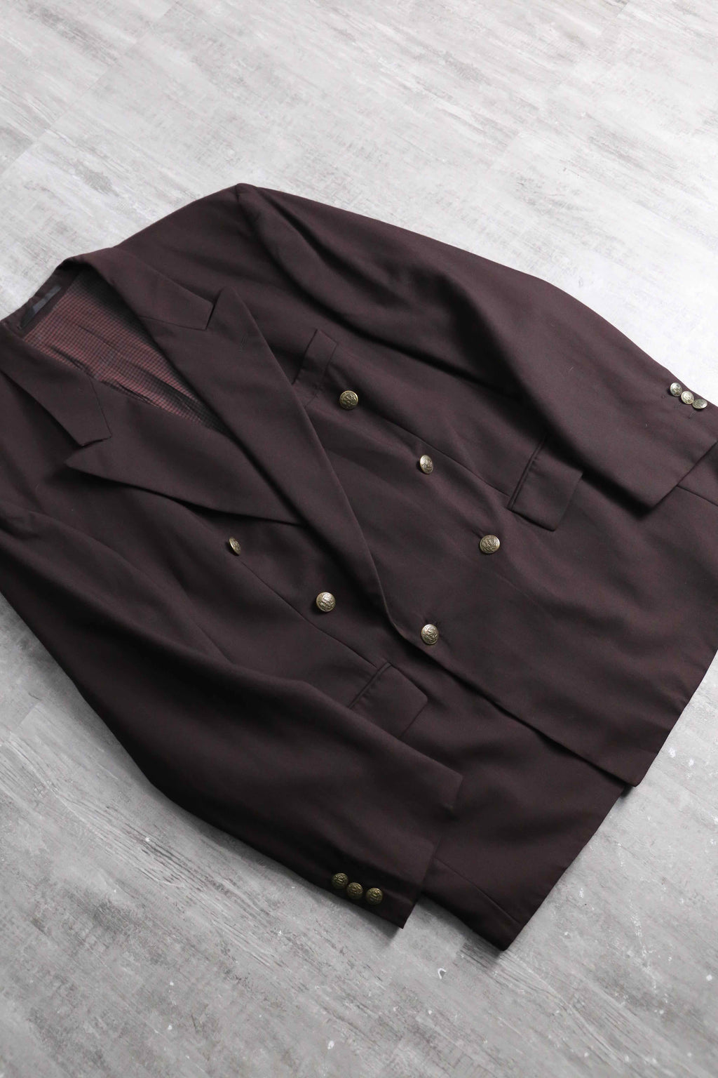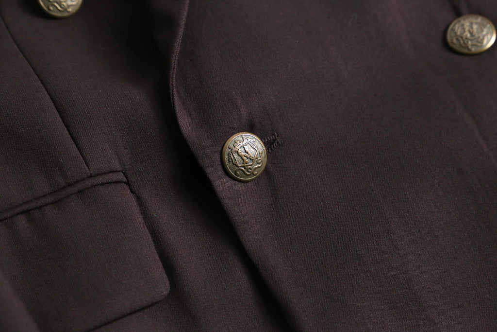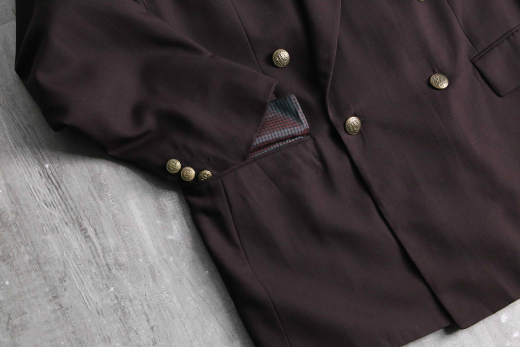 reddish brown double breasted wool blazer