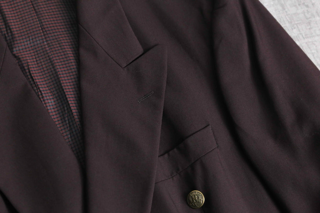 赤みのあるブラウンカラーのブレザーの入荷。店頭でも高需要のダブルブレスト仕様です。