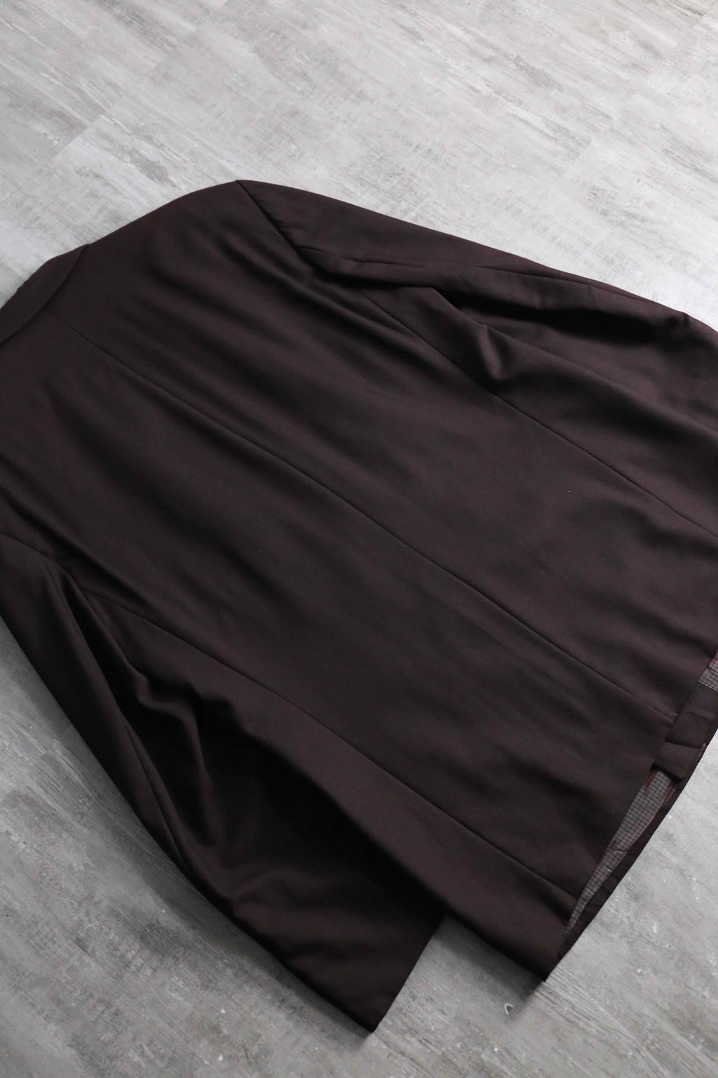極細ウールを高密度に織り上げたファブリックを採用。少しのシャリ感と柔らかさが共存し、しなやかなドレープを生み出します。ほどよい光沢が上品で、落ち着いた色味ながらしっかりと存在感のある仕上がりです。