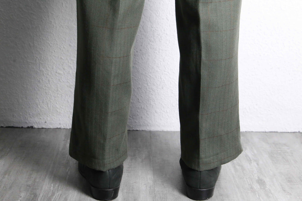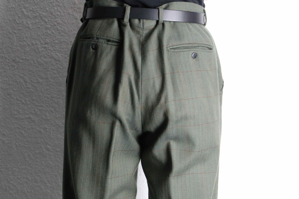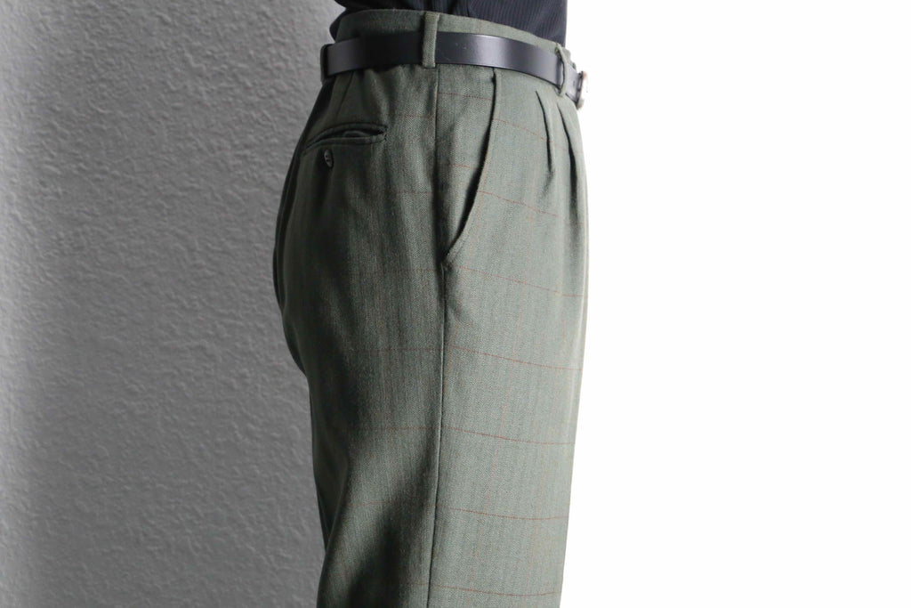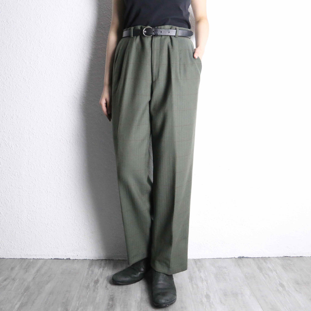 olive check two-tuck wool slacks