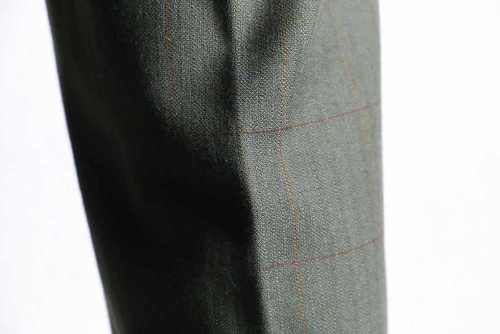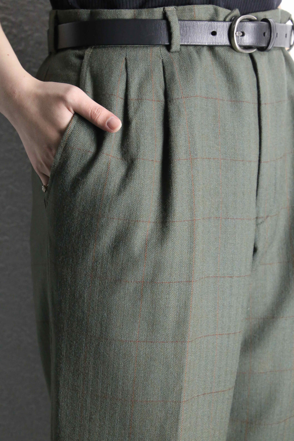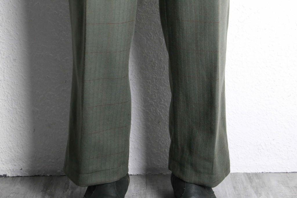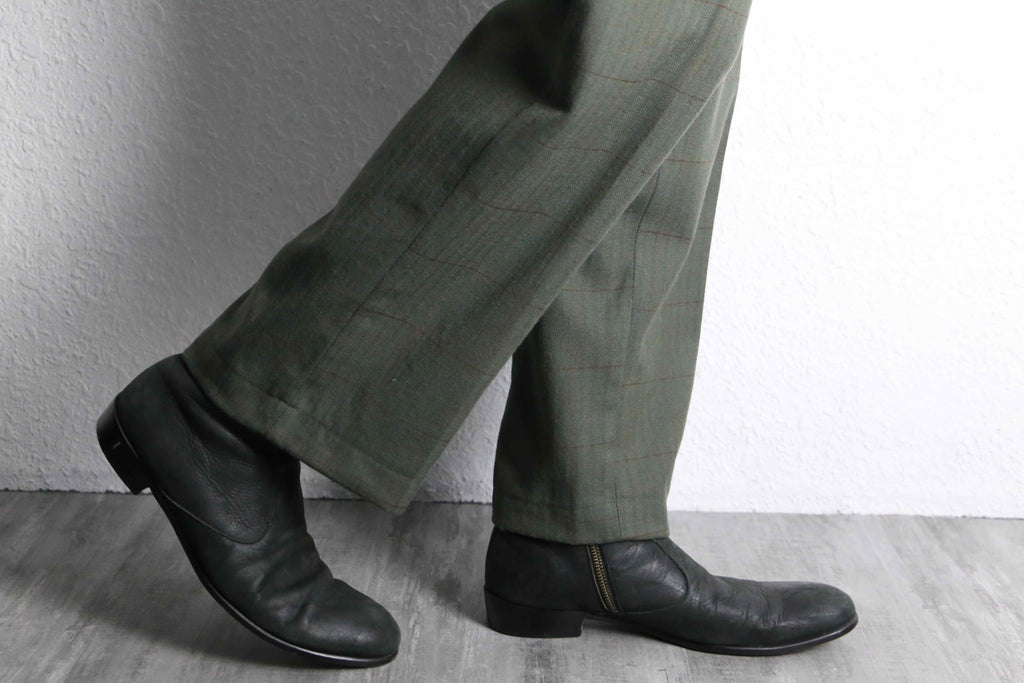 olive check two-tuck wool slacks