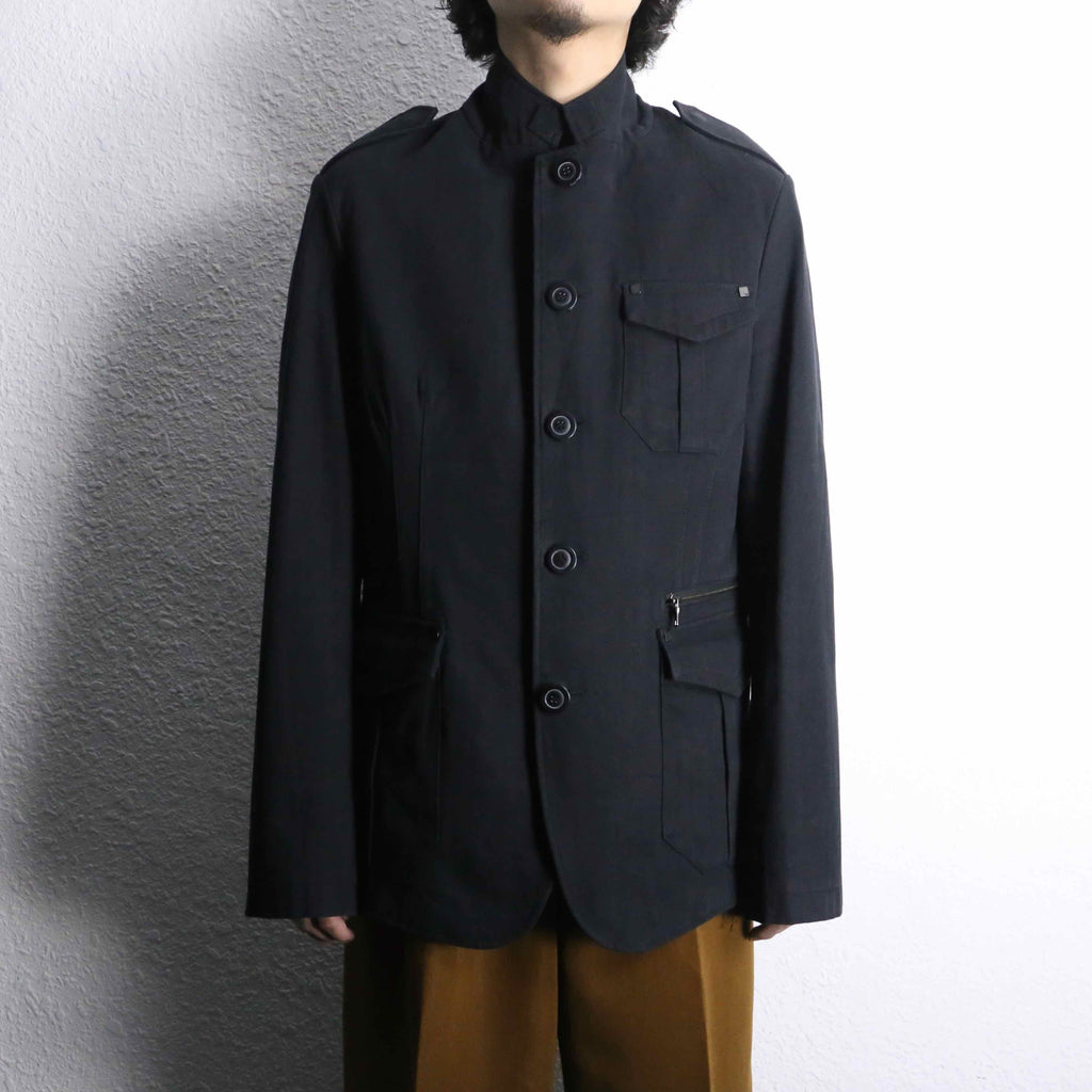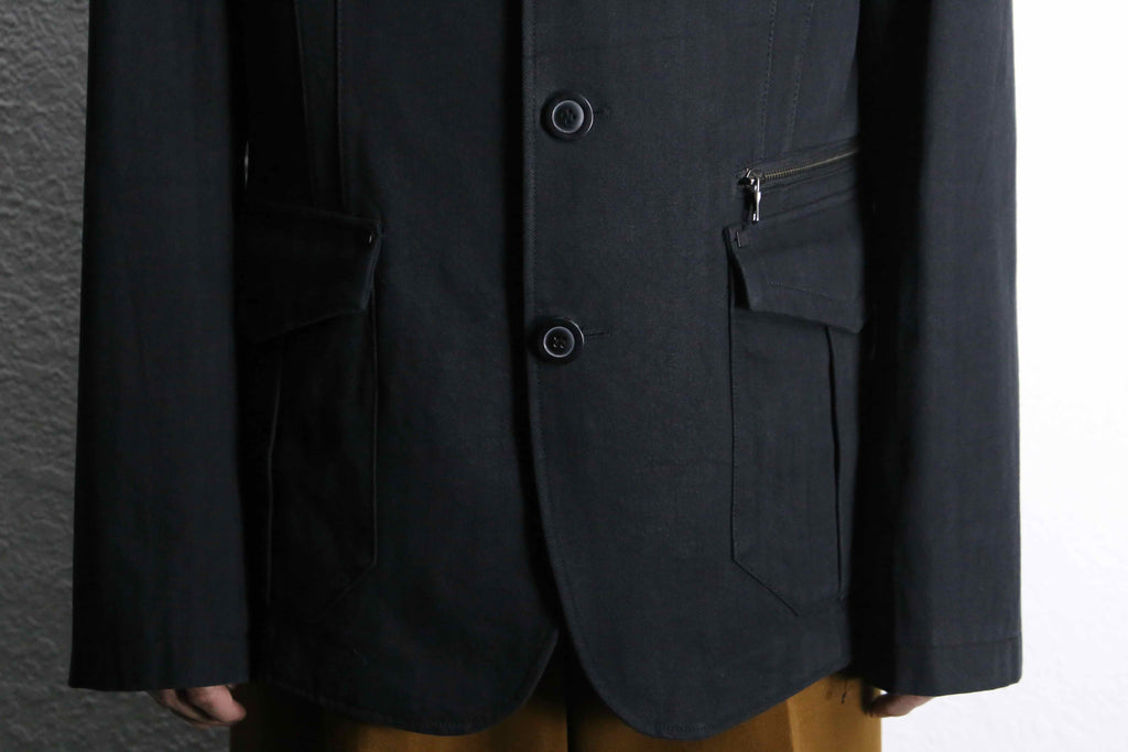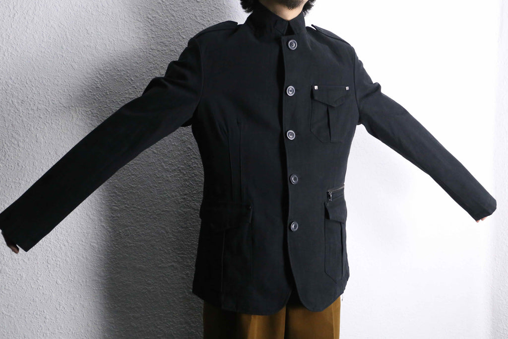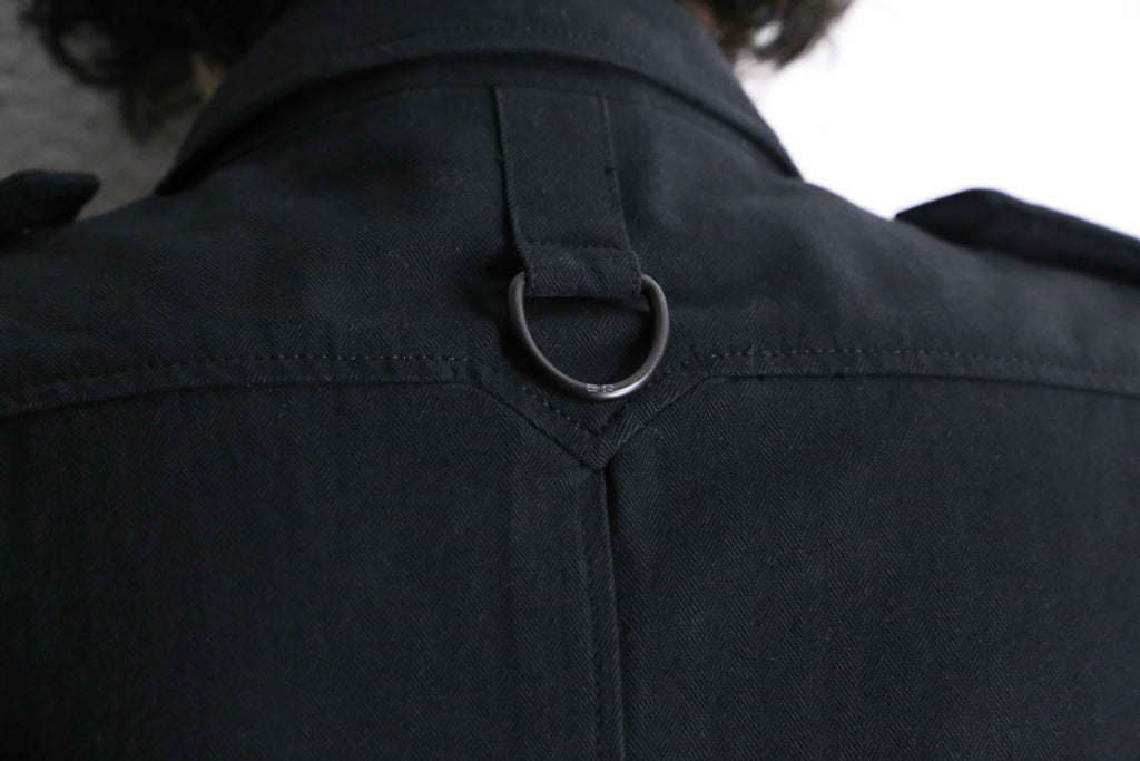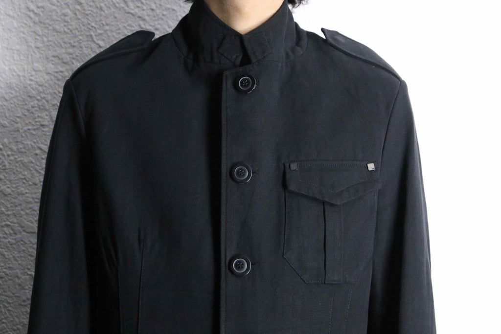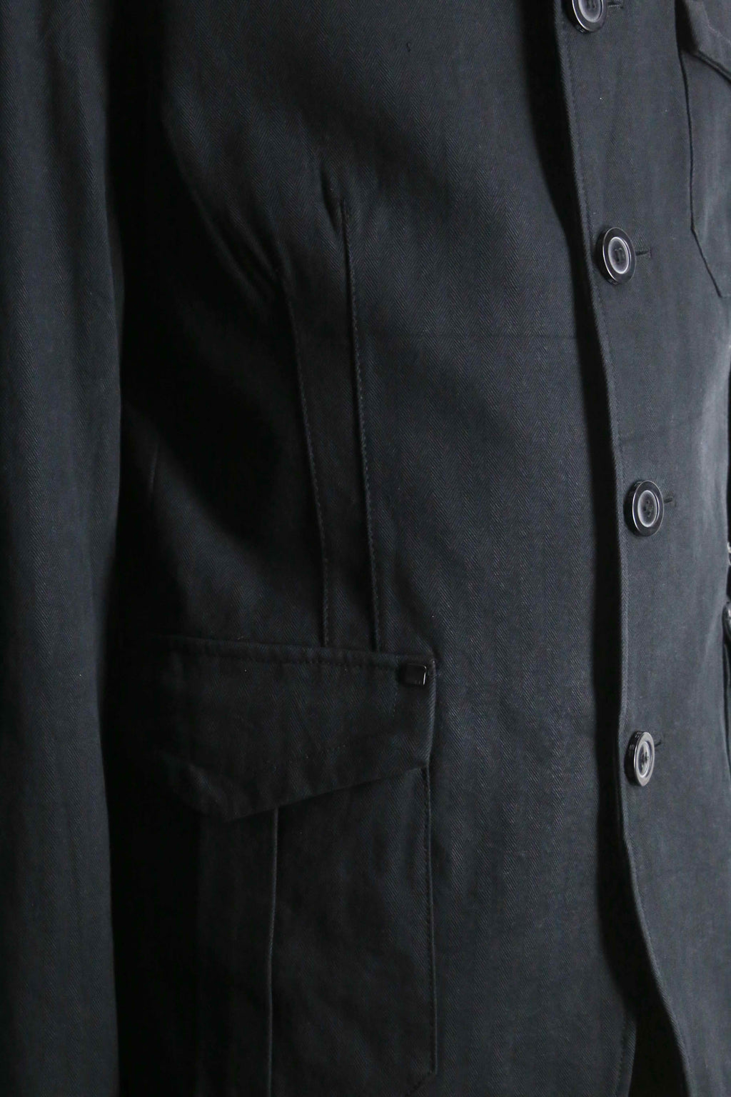 エポレット付き・3つのフラップポケット・コットンヘリンボーン生地…でありながらベースはテーラードジャケット型。ミリタリー要素の無骨さとジャケットの上品さを合わせ持つ一着です。