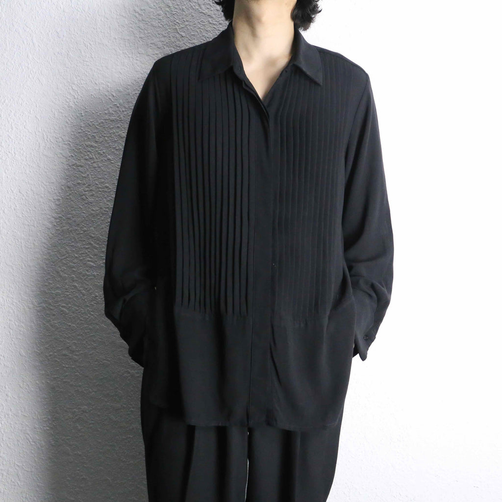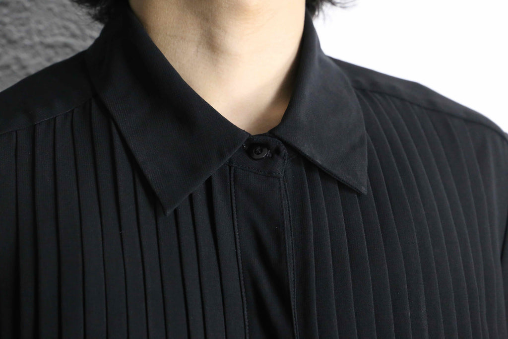 ドメブラあたりに見かけそうなフロントプリーツが施された軽快なシャツが入荷です。