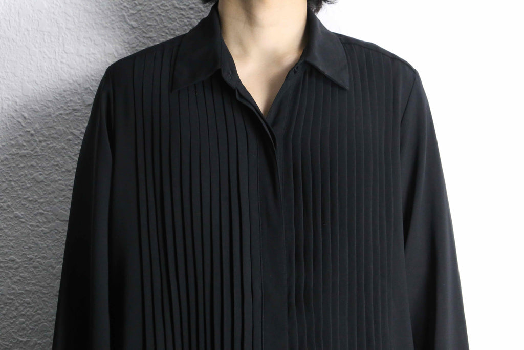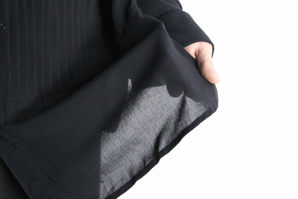 この手では珍しいのが袖元。プリーツの表情はもちろん、ダブルカフス仕様というのも面白いポイントです。1枚着にこういうのは欠かせませんね。