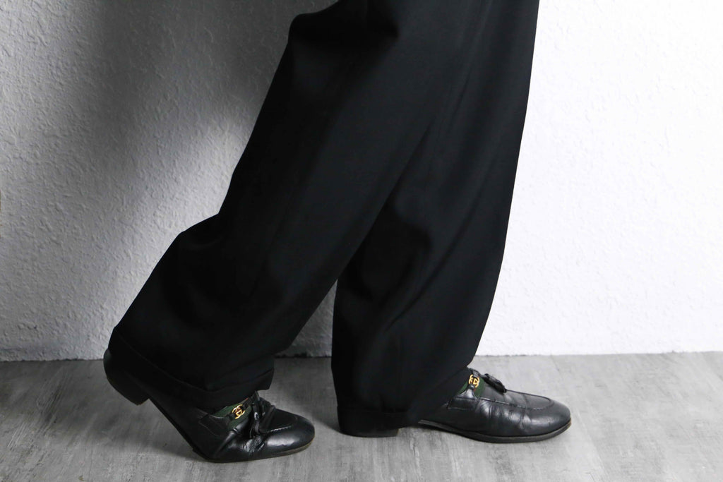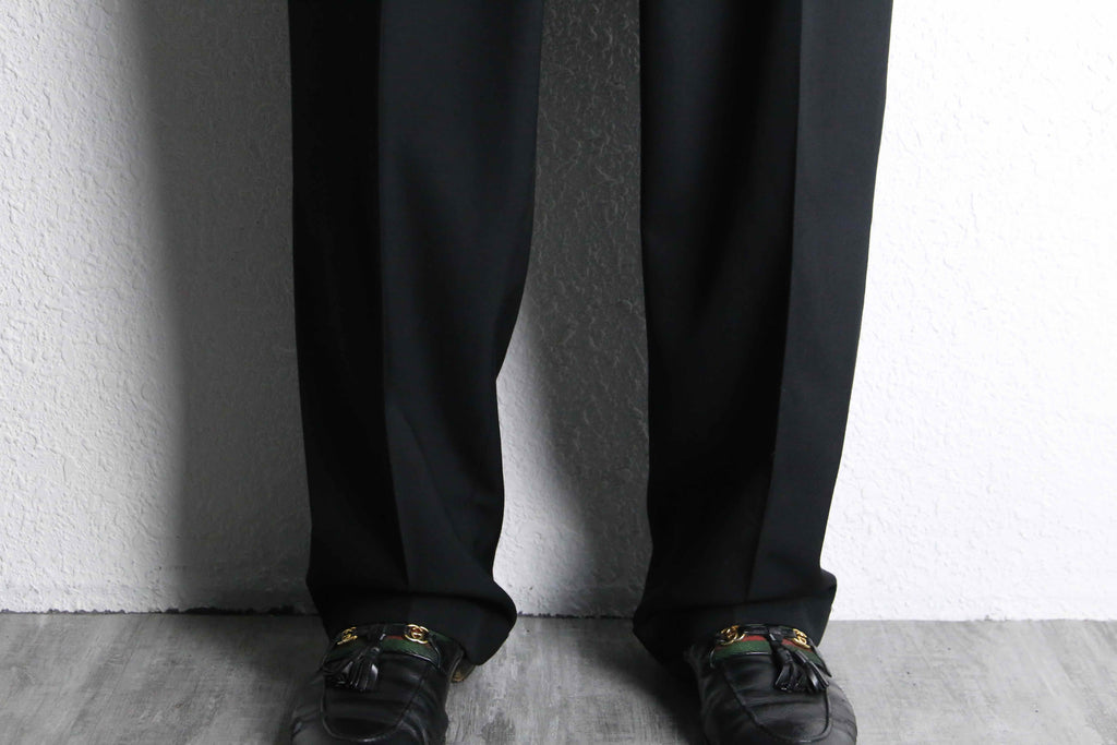 black wide tapered slacks