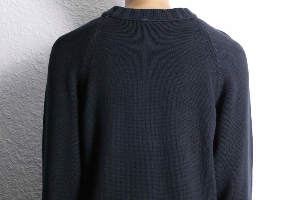 シンプルなニットほど古着界隈においてあまり見当たらない印象ですが、リブ付近に多少のデザインはあれどシンプルな方かと思います。ローゲージに加え使い勝手の良いネイビーの色味。秋冬に大活躍しそうです。ぜひ。