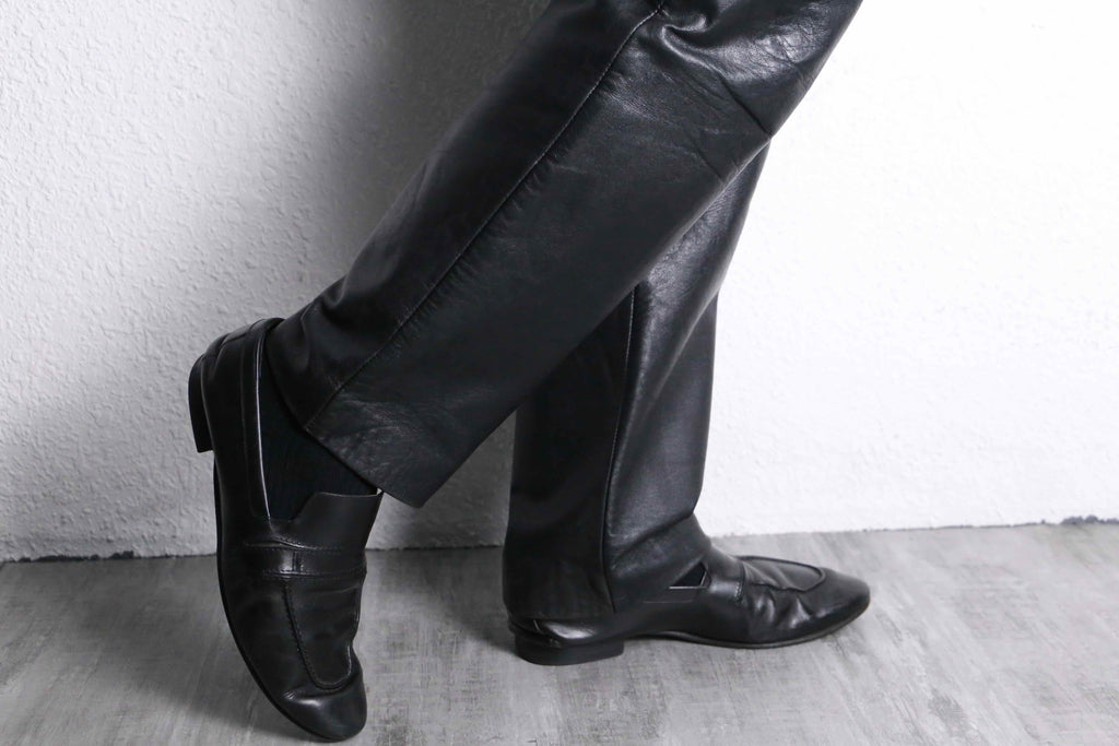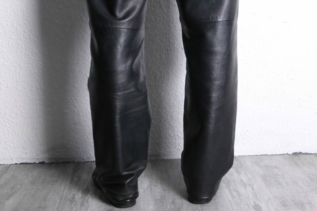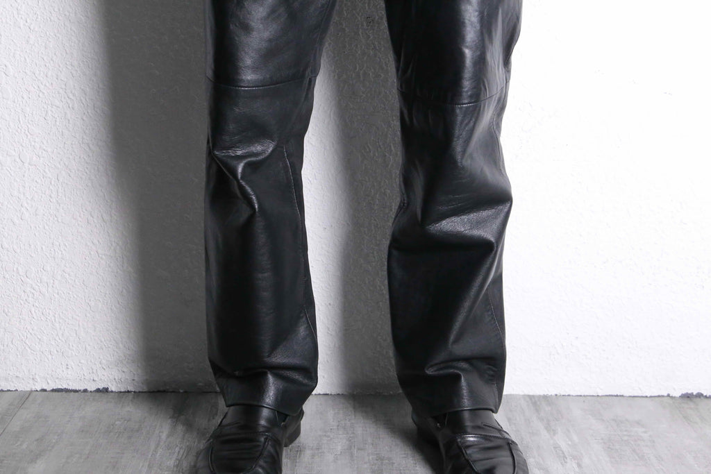 black color real leather stitch design pants