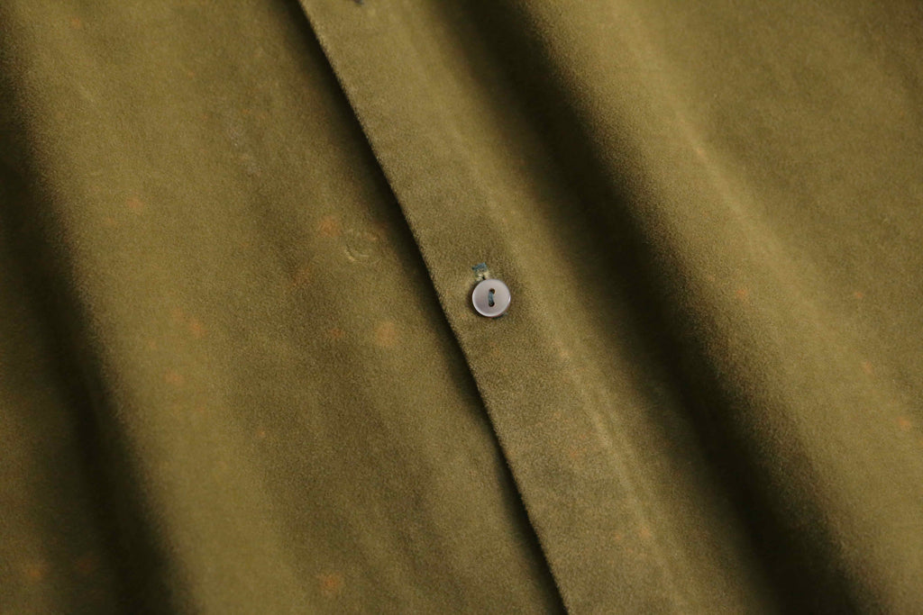 高密度の織で表面を起毛させる事で丈夫さと肌触りの良さ、上品な光沢を兼ね備えたモールスキン。着丈・肩幅にゆとりがありますので、秋のアウターから冬のインナーまで幅広く着て頂きたい逸品。