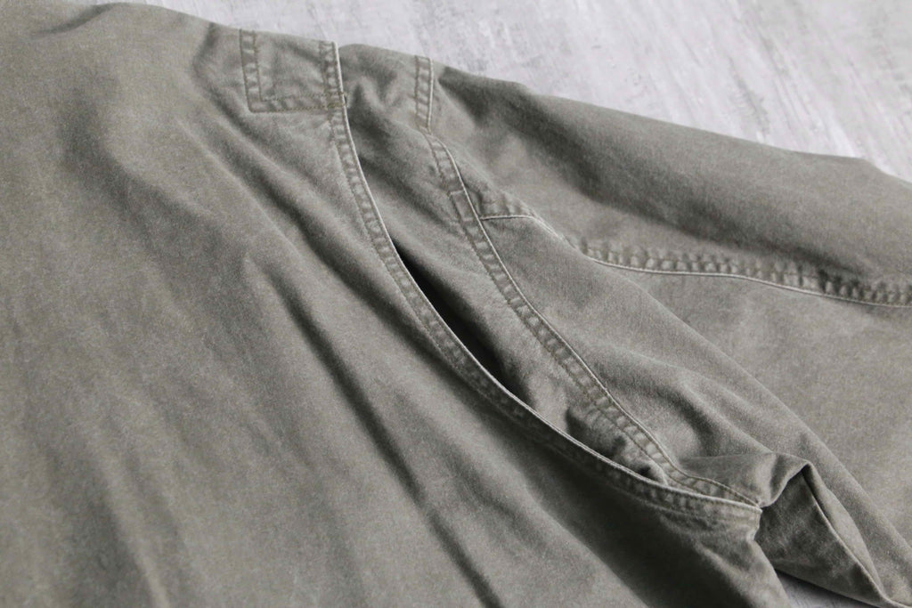 本来であればジャストで合わせてジャケットらしく着るアイテムですが、こちらはXXLサイズ。ミドルレングスのジャケットのように緩く羽織ることで、よりリラックスした雰囲気を楽しめそうです。ぜひ。